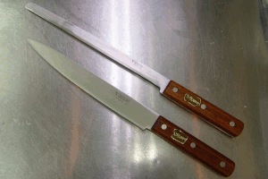 刃はギザギザのものだとサンドされている果物が引っかかってしまい切りづらいので、良く砥いだ真っすぐな刃の包丁が向いています。
