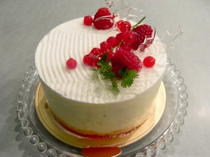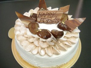 デコレーションで、栗のペースト入りクリームを使用し、さらにクラッシュしたマロンを中にサンドしてありますので、栗好きの方にはたまらない一品です。