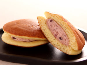 ![]() 香ばしい生地に粒あんを入れ、さらに餅が入る少し変わったどら焼きです。 やわらかな餅がどら焼きに良いアクセントになっている人気の品です。 | ![]() |