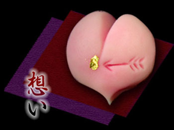 ![]() ピンクのハートをモチーフに素敵な方の心を打ち抜くキューピッドをイメージしました。金箔は「気持ちの中心」という意味です。 | ![]() |