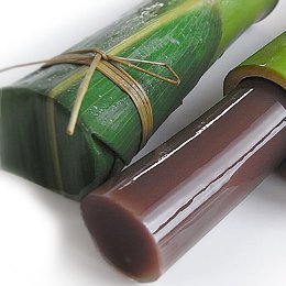 オリジナルの水ようかんは、黒糖が入ったコクのある味です。 青竹の中に入った羊羹は、口でまったり&サラリととけます。よく冷やして、いただくと、格別のお味。竹に入ったようかんを取り出すのは、驚きの楽しさ。