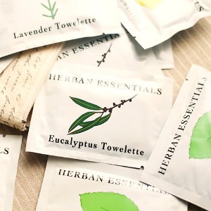 ビタミンやミネラルなどのエッセンシャルオイルを染み込ませた、携帯用ウェットティッシュが、ハーバンエッセンシャルズから届きました。